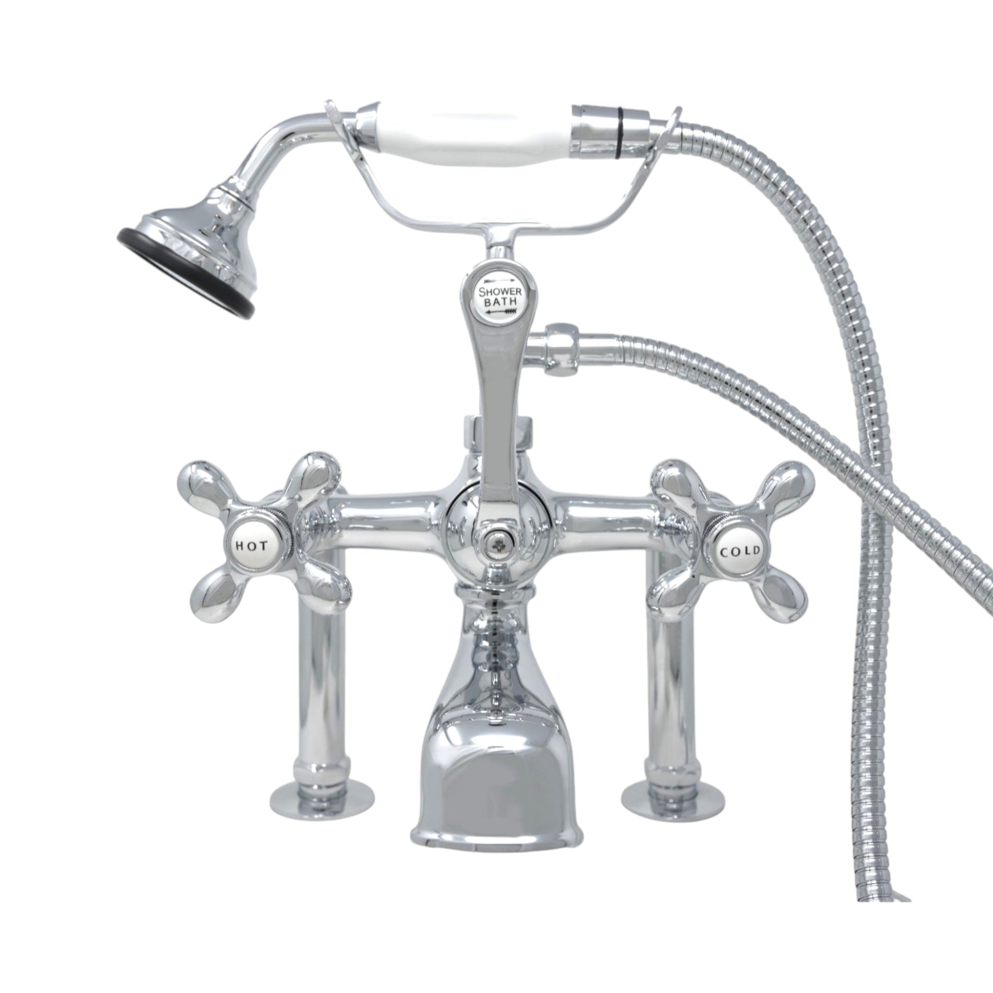 Strom Living British Telephone Deck Mount Tub Faucet with Handheld Shower and Diverter Handle