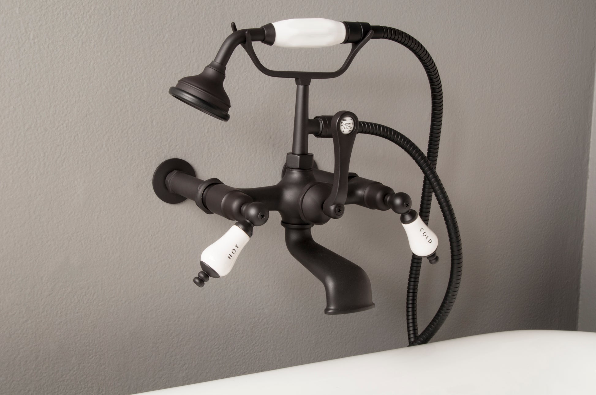 Strom Living British Telephone Tub Faucet with Handheld Shower, Inlet Cradle and Diverter Handle