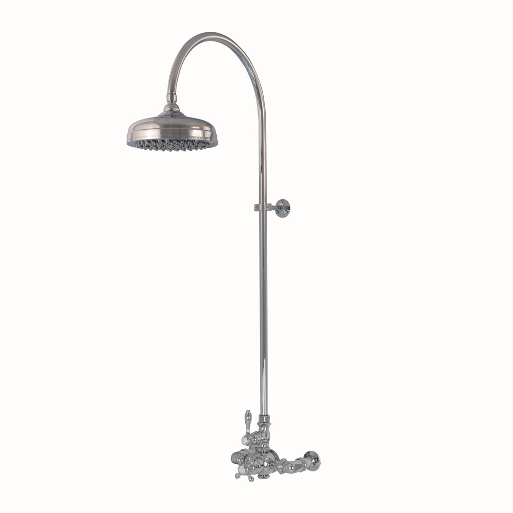 Upgrade your bathroom with the Thermostatic Exposed Shower Set featuring a sophisticated gooseneck riser. This elegant set seamlessly merges modern design with advanced functionality, delivering both style and practicality. The Thermostatic Exposed control provides precise temperature regulation, ensuring a consistently safe and comfortable shower experience. The distinctive gooseneck riser adds a touch of luxury while offering ample height and flexibility, making it ideal for various bathroom configurations. Whether you're remodeling or updating your space, this set combines aesthetic appeal with exceptional performance, elevating your bathroom to a new level of sophistication.