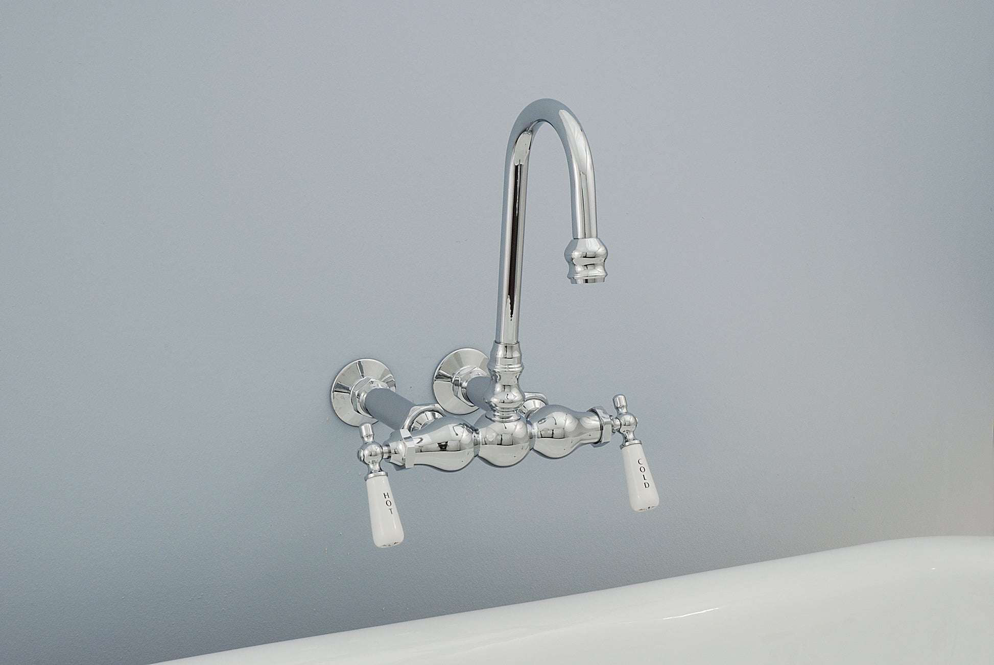 - Gooseneck Tub Faucet, Wall-Mounted Tub Faucet, Porcelain Lever Tub Faucet, Vintage Tub Faucet, Timeless Bathroom Faucet