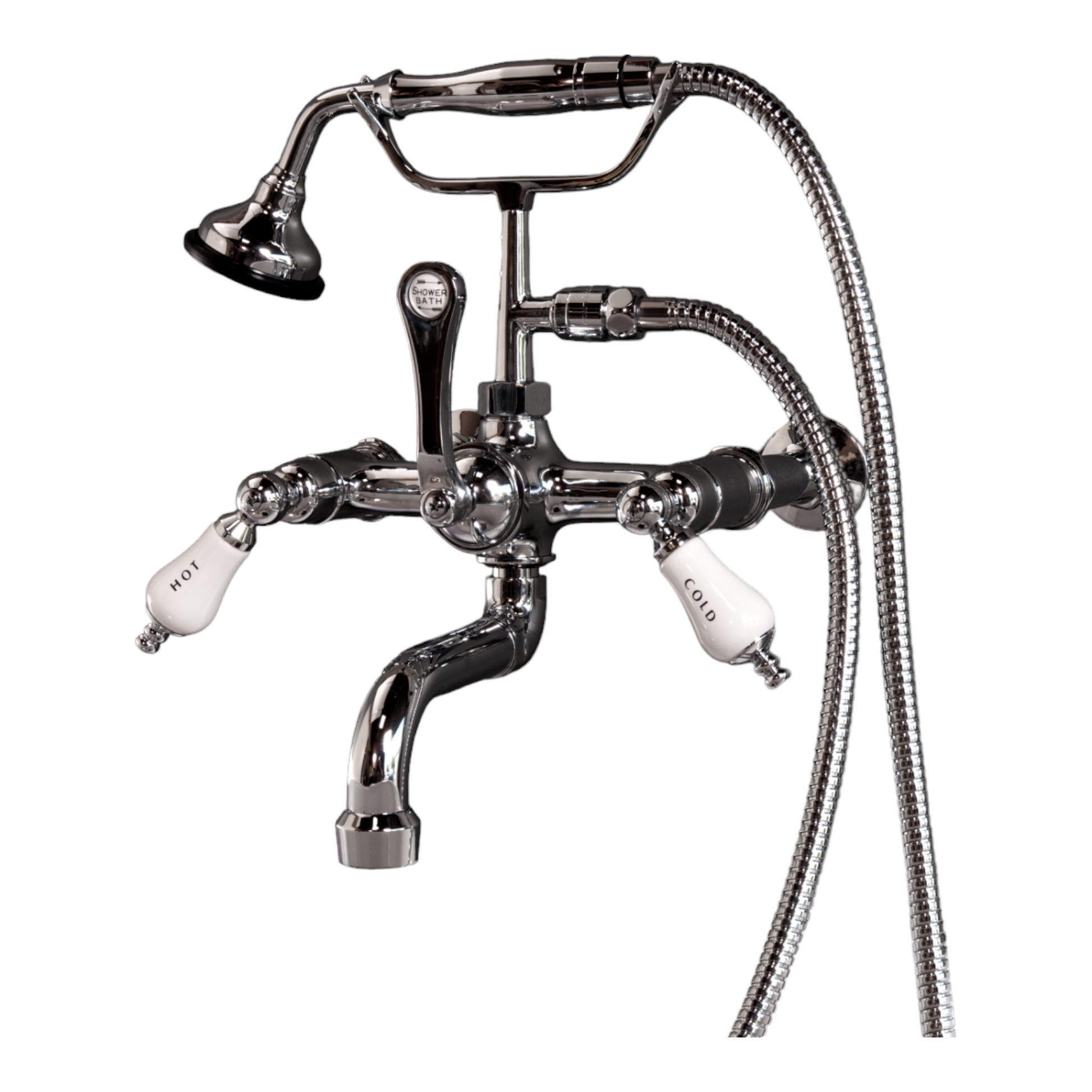 The Strom Living Wall Mounted Traditional Telephone Faucet is a sophisticated blend of vintage elegance and modern functionality. Its timeless design, featuring porcelain handles, enhances the charm of any bathroom. This faucet is not only stylish but also practical, with a wall-mounted configuration and a handheld shower for added convenience.