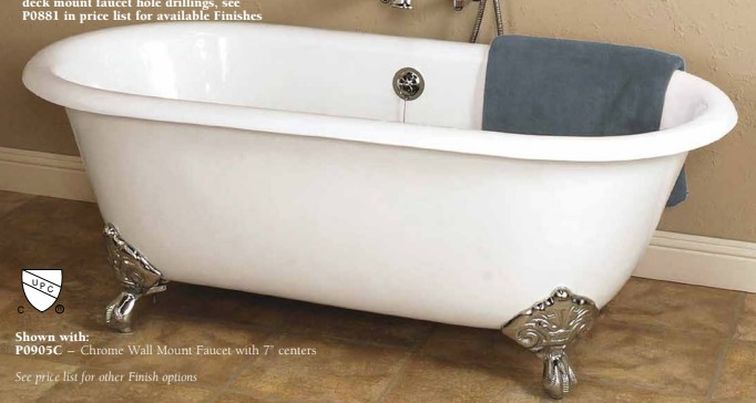 Strom Living Mendocino Cast Iron with 5' Double Ended Clawfoot Tub and 7" Faucet Holes