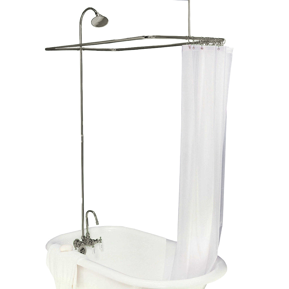 Please note, many leg tubs are slightly slanted on the end. The enclosed riser nut and large cone washer have been designed to compensate for this fact. It is important to only hand tighten the riser to the faucet, then make the riser vertical using the wall and ceiling braces, and finally tighten the riser nut.