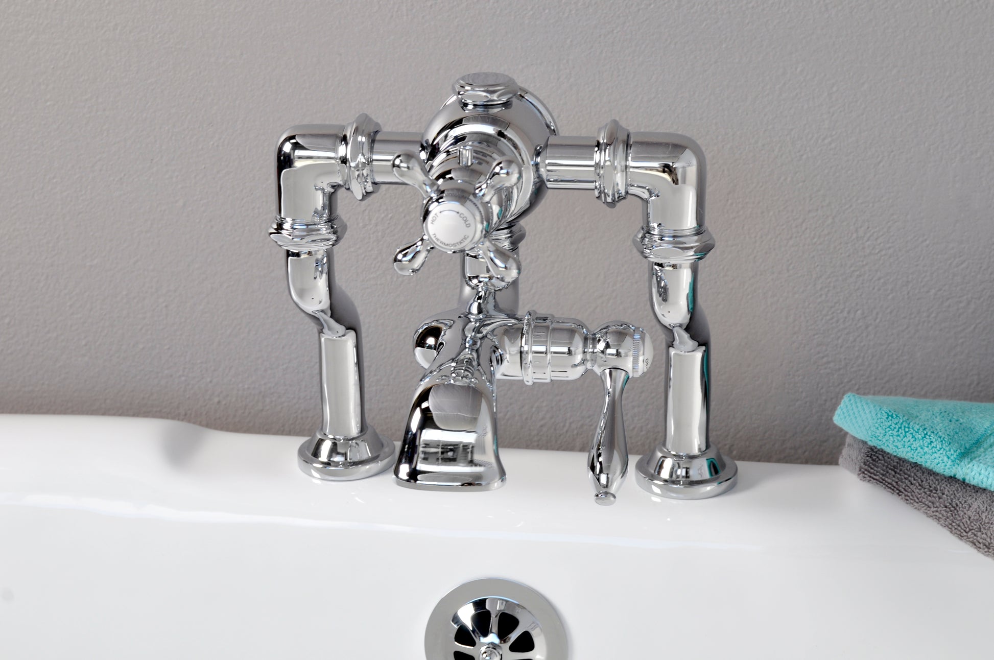 Elevate your bathroom's design and performance with the Strom Living Thermostatic Deck Mount Tub Faucet with Adjustable Centers. A perfect blend of classic styling and modern innovation, this thermostatic faucet ensures precise temperature control, tested to stay within 1°F of your set temperature. With a built-in automatic temperature stop at 104°F for safety, it offers an optimal bathing experience without sudden hot or cold fluctuations. Ideal for freestanding tubs or decks with adjustable center setups, this faucet is available in a range of finishes to suit your unique style. Whether you're creating a traditional or contemporary bathroom, this faucet provides both beauty and functionality.